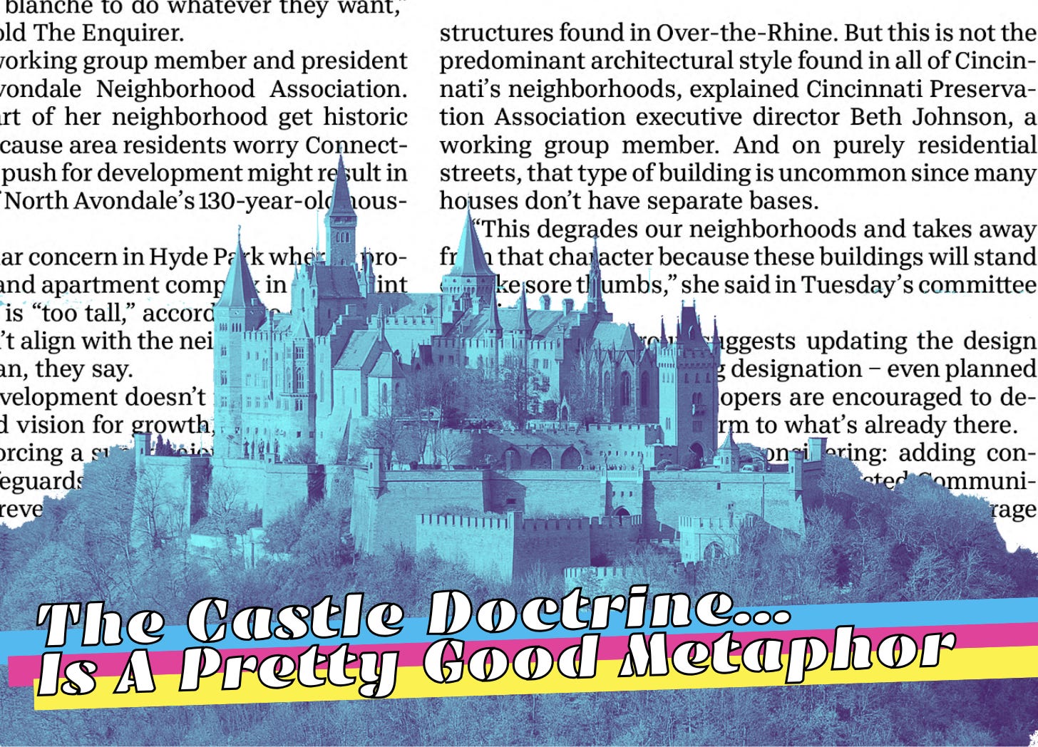 Many common law systems have something called the castle doctrine. The name has always struck me as deceptively twee, like the various metaphors that political writers pass around. “Third rail” is a kind way of naming the most vicious bigotries and policies you can imagine, just as “castle doctrine” is the origin story of stand your ground laws, defunded child welfare offices, and right wing talking points across the globe.